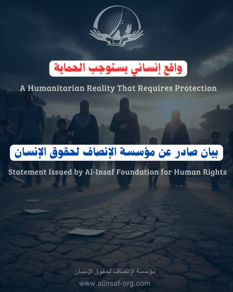واقع إنساني يستوجب الحماية صادر عن مؤسسة الإنصاف لحقوق الإنسان تتابع مؤسسة الإنصاف لحقوق الإنسان الأوضاع الإنسانية في شمال وشرق سوريا، وما تشهده هذه المناطق من معاناة متفاقمة نتيجة استمرار […]