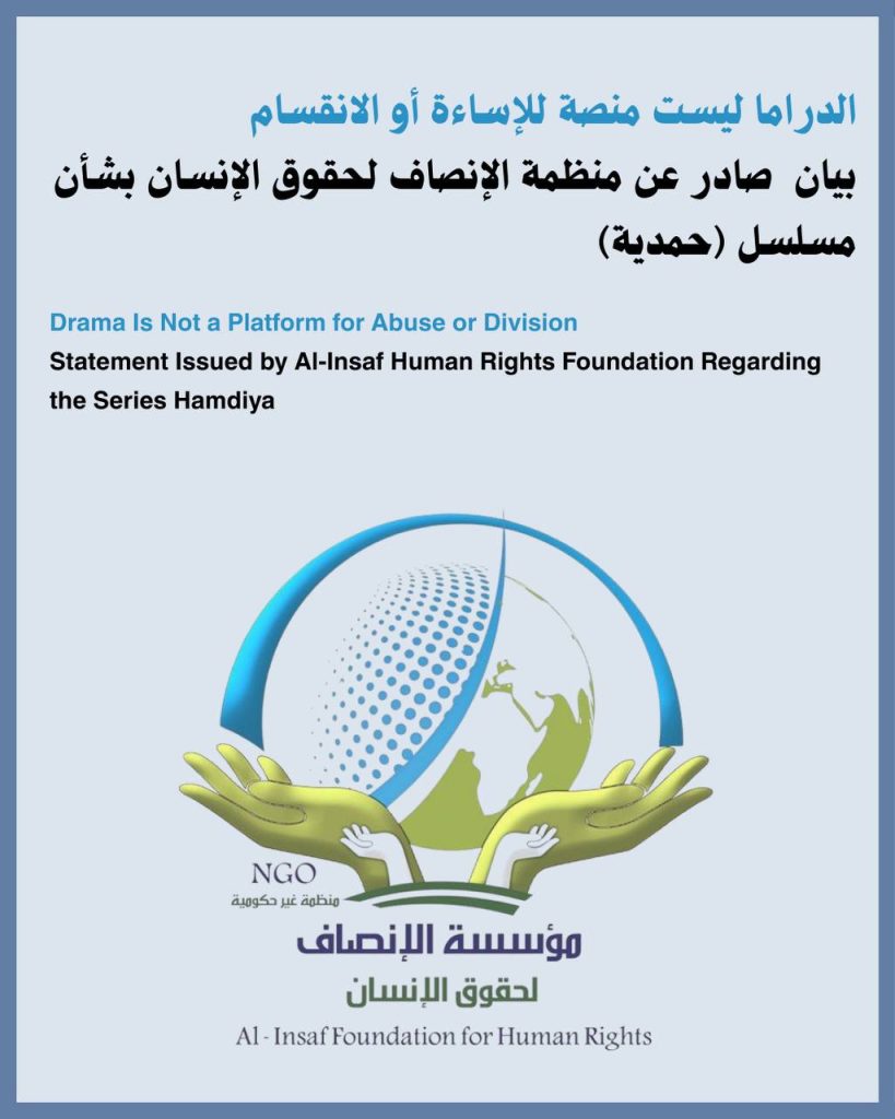 الدراما ليست منصة للإساءة أو الانقسامبيان صادر عن منظمة الإنصاف لحقوق الإنسان بشأن مسلسل (حمدية) تعرب منظمة الإنصاف لحقوق الإنسان عن بالغ استهجانها وإدانتها الشديدة لما ورد في الإعلان الترويجي […]