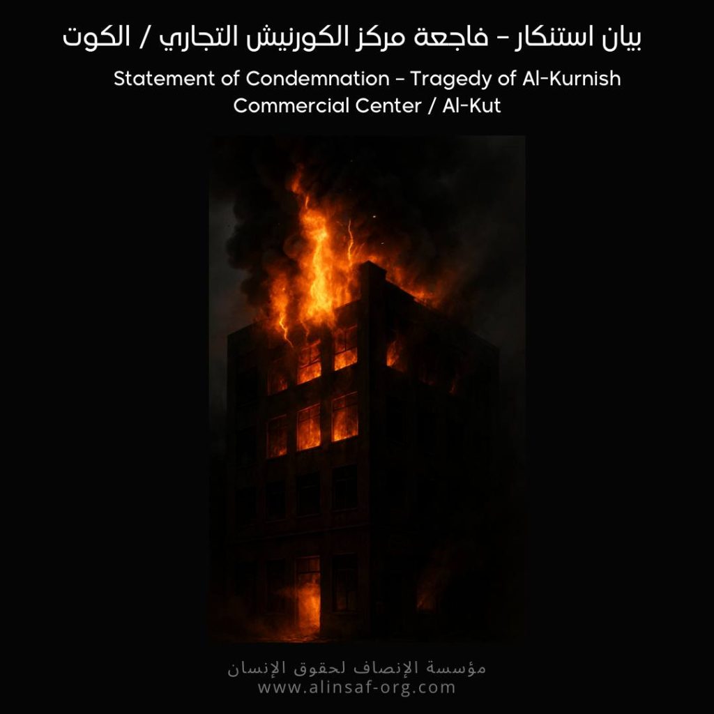 تدين مؤسسة الإنصاف لحقوق الإنسان بأشد العبارات الكارثة الإنسانية التي وقعت في مركز “الكورنيش التجاري” بمدينة الكوت، والتي راح ضحيتها العشرات من الأبرياء بين قتيل وجريح ومفقود، جراء حريق مروّع […]